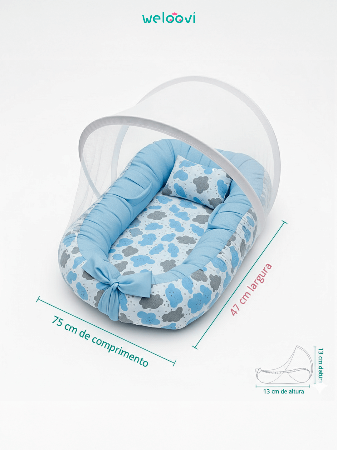 Com o MosSafe, o ninho que protege sem tirar o aconchego, você cria um cantinho seguro, limitado e livre de insetos — sem alterar a rotina do bebê.